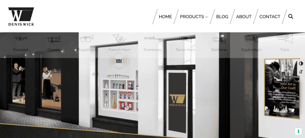 Denis Wickは、いまや金管アクセサリーの大手として世界中に流通していること、工房がドーセット(Hamworthy, Dorset)にあることなども公式ページに記載があります。