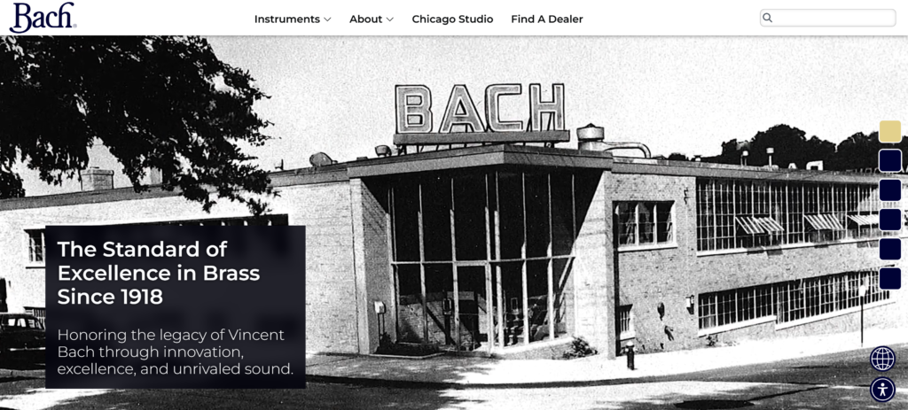 またBach Brassの年表では、1925年に最初のBachトランペットが販売された(2025年で100年)という節が用意されています。