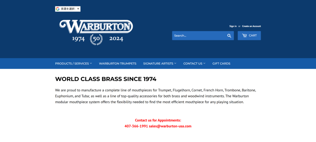Warburtonは公式サイトで「World Class Brass since 1974」と掲げ、ユーフォを含む各金管向けマウスピースを製造している、と説明しています。